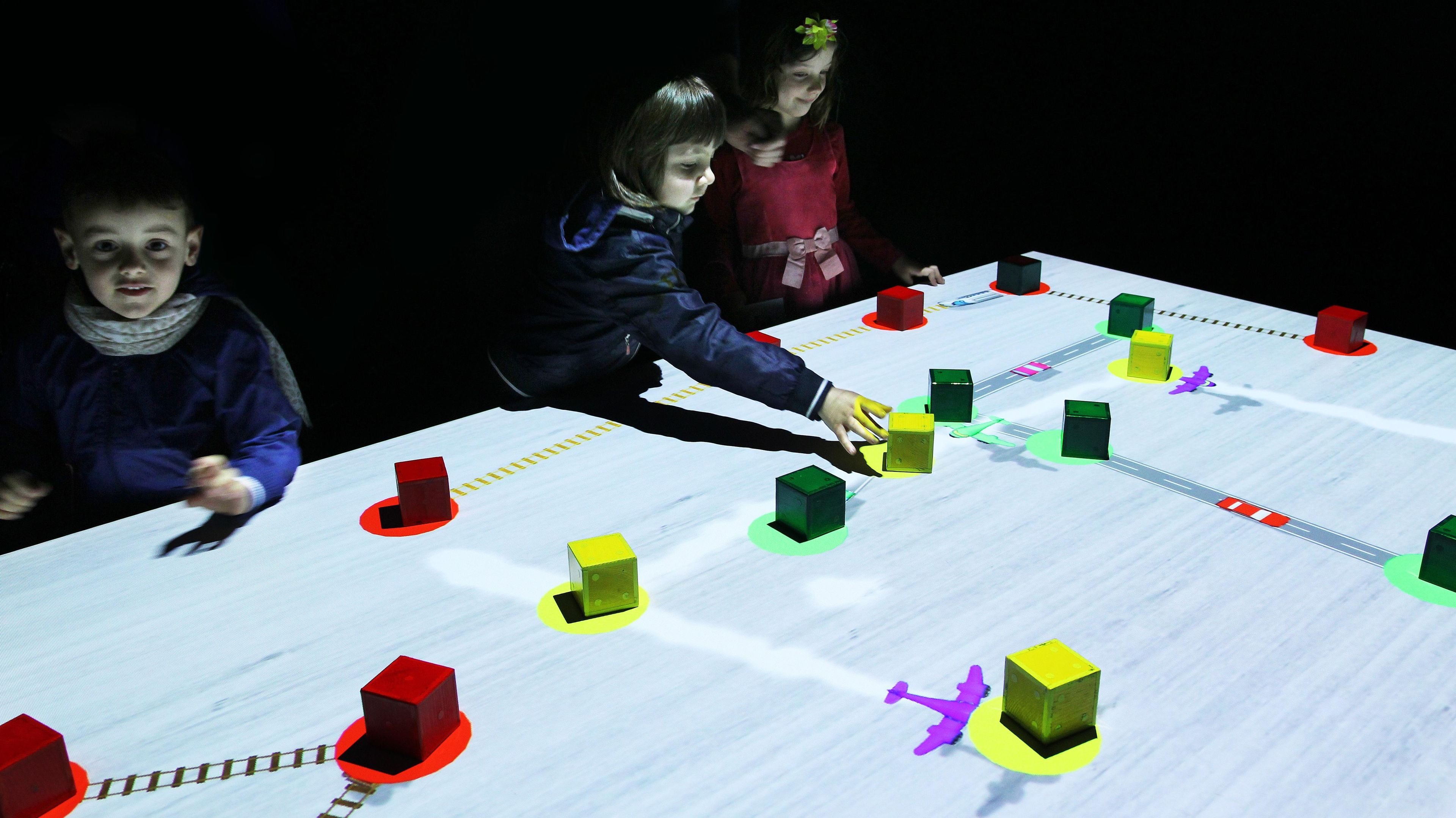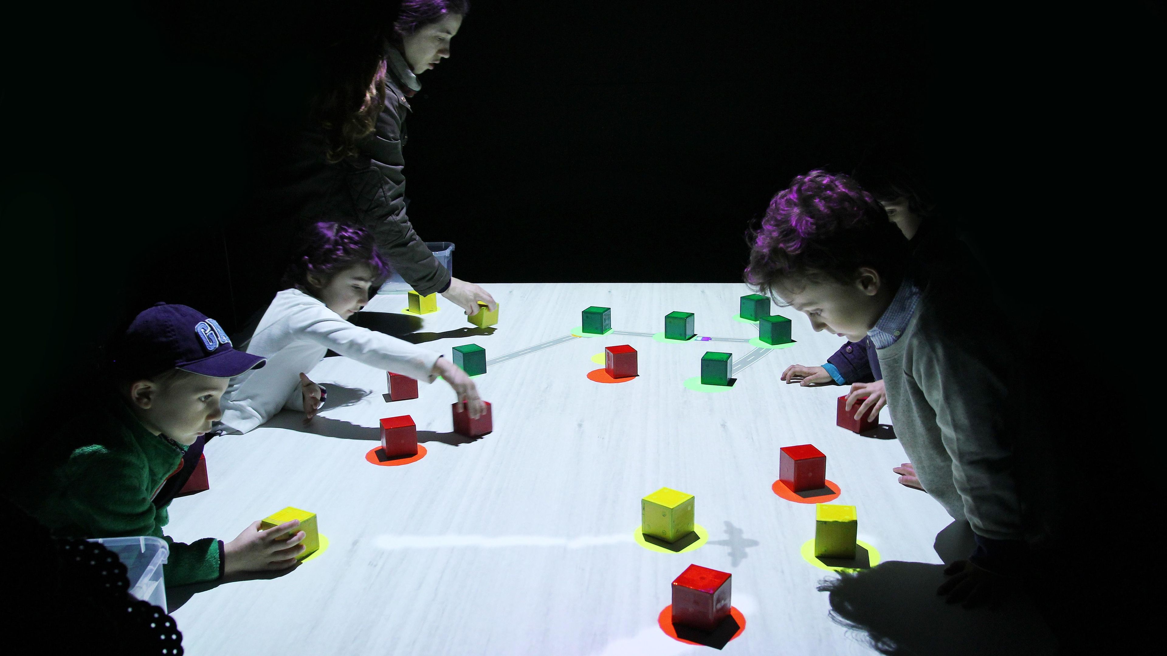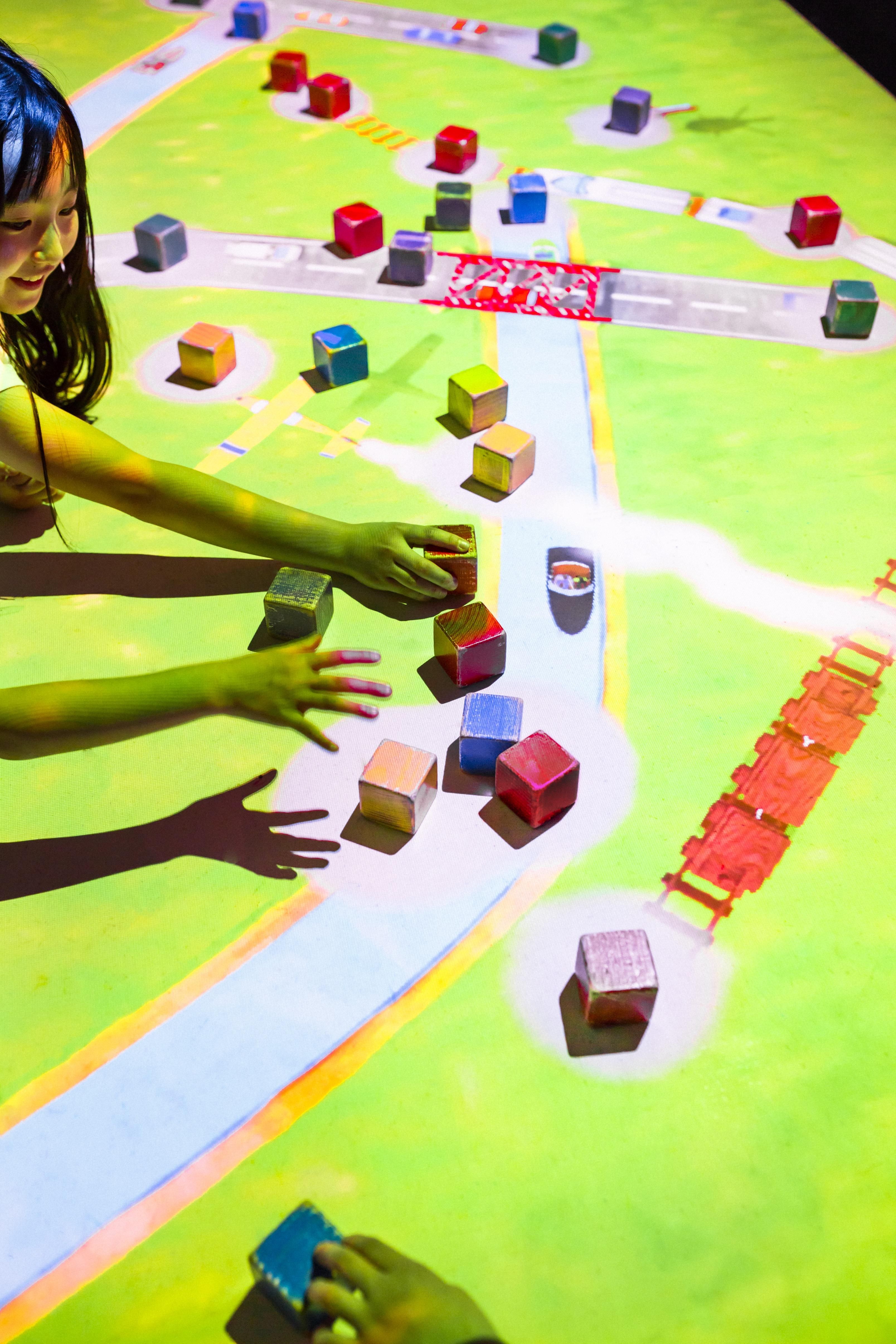 teamLab, 2013-, Interactive Digital Installation, Wooden blocks, Sound: Hideaki Takahashi