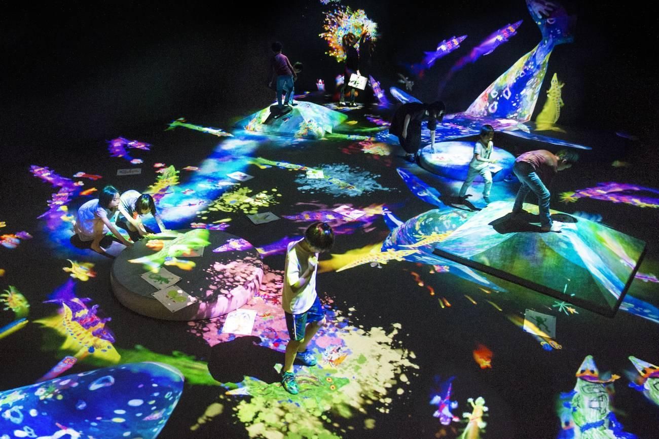 teamLab, 2017-, Interactive Digital Installation, Sound: Hideaki Takahashi