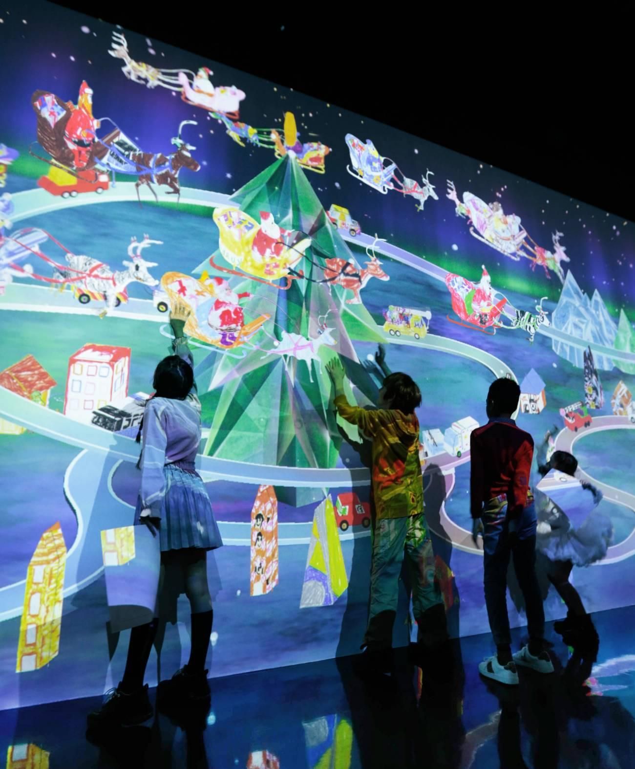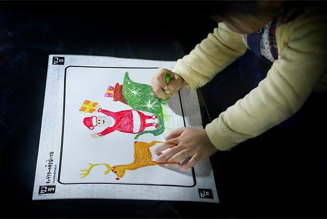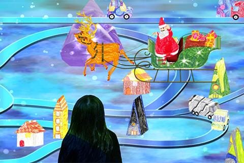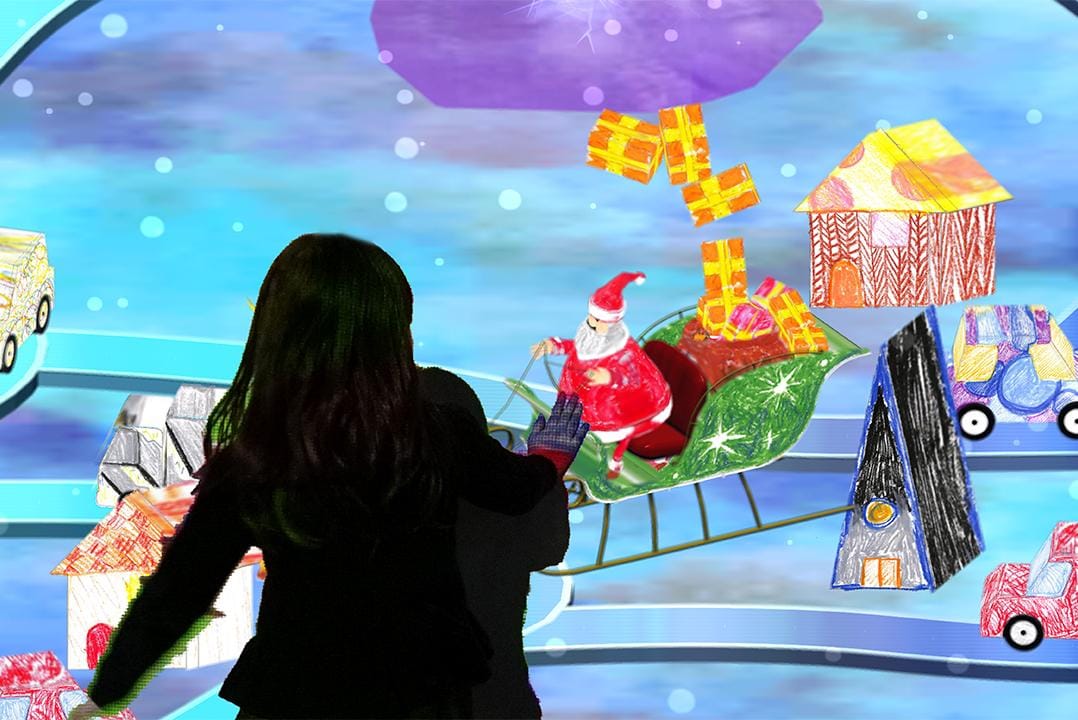 Children can also draw other parts of the town that Santa Claus will come to visit, such as, cars, buildings etc. The Christmas town that is created depends on what pictures the children choose to draw. Each childs picture enters into the town along with the pictures drawn by other children, and the drawings move around and come to life in the town. Children can also decorate the town itself too. As the different pictures enter the town, different scenes evolve. You can also enjoy interacting with the pictures: touch a car, for instance, and it will speed up!