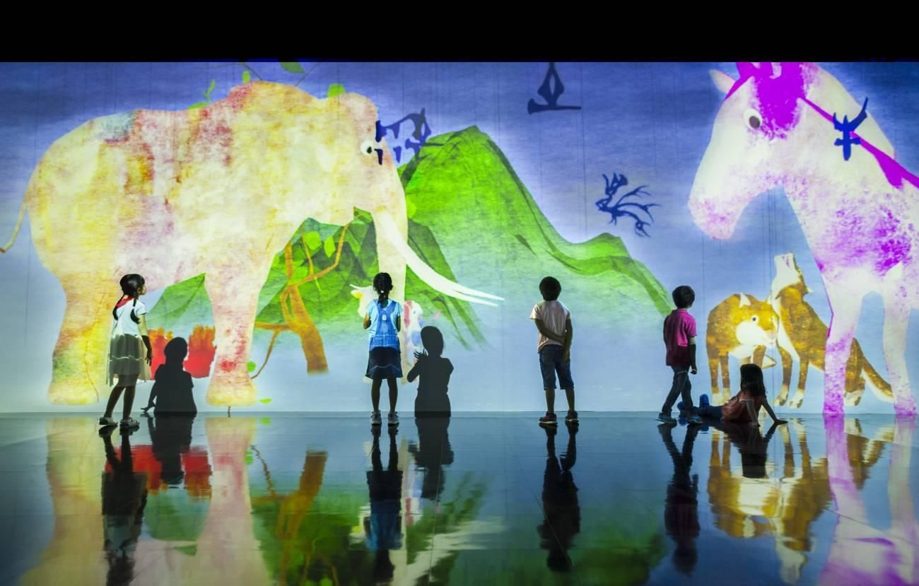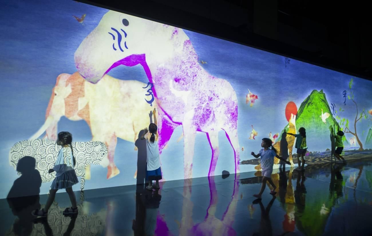 Sisyu + teamLab, 2013-, Interactive Digital Installation, Calligraphy: Sisyu, Sound: Hideaki Takahashi