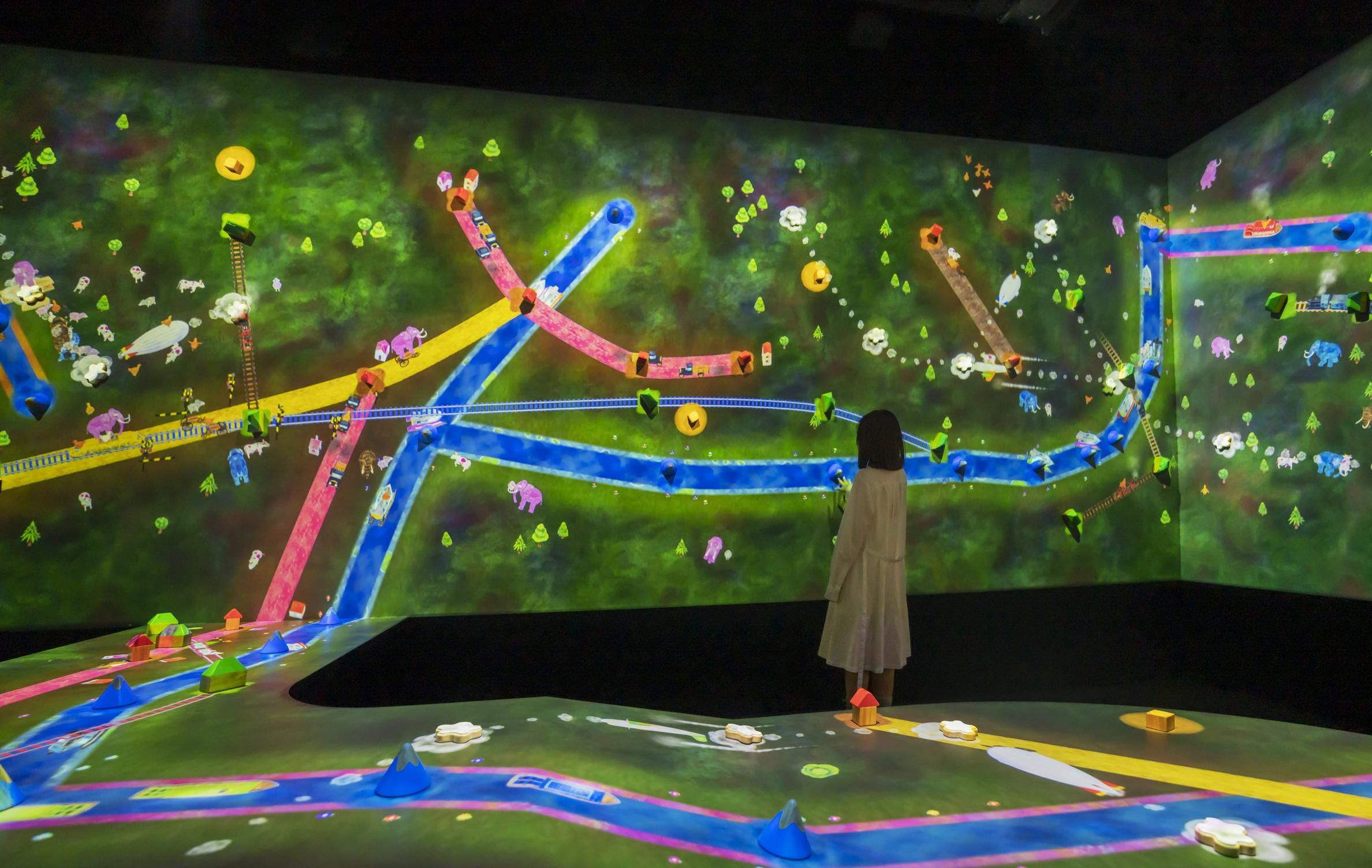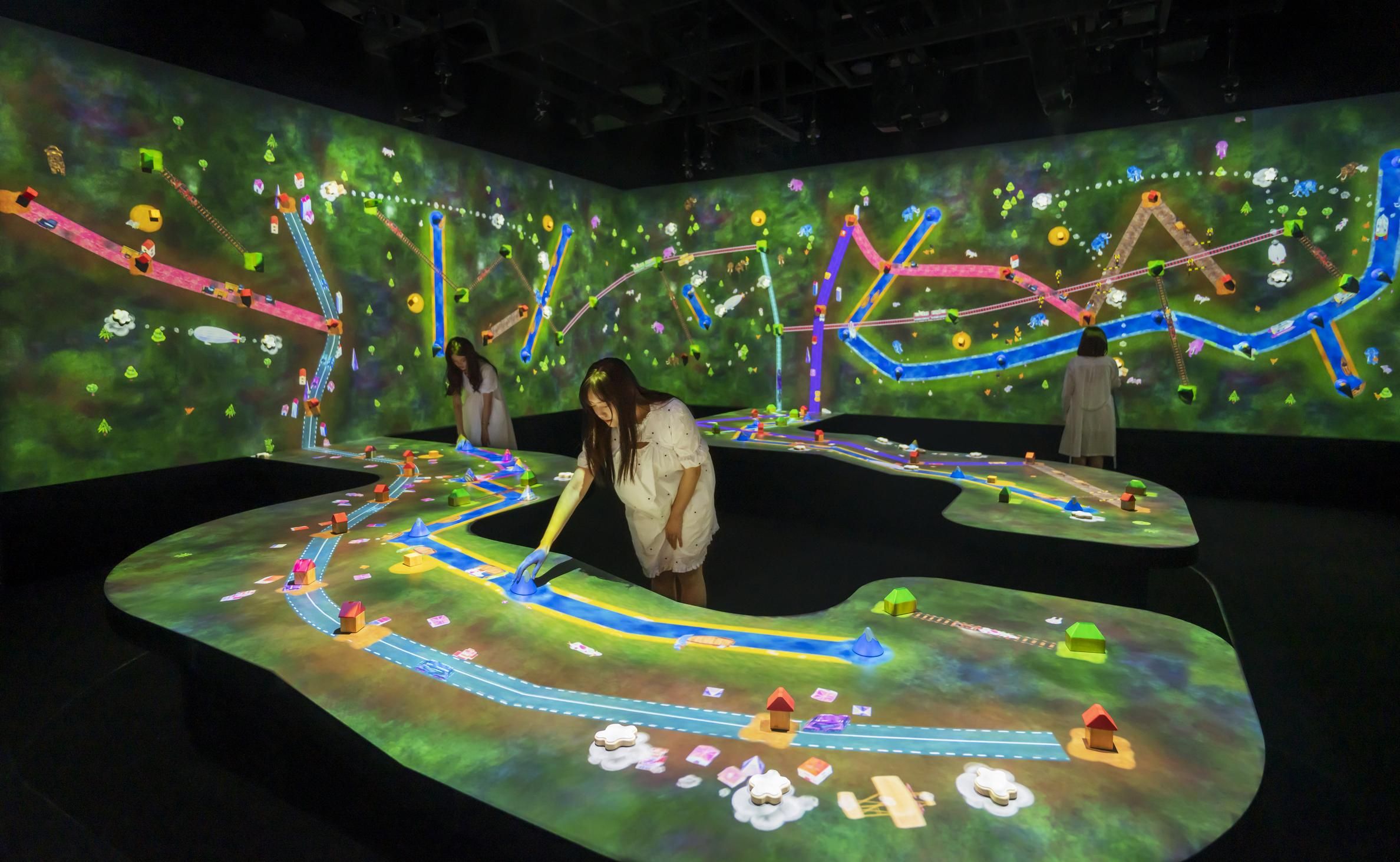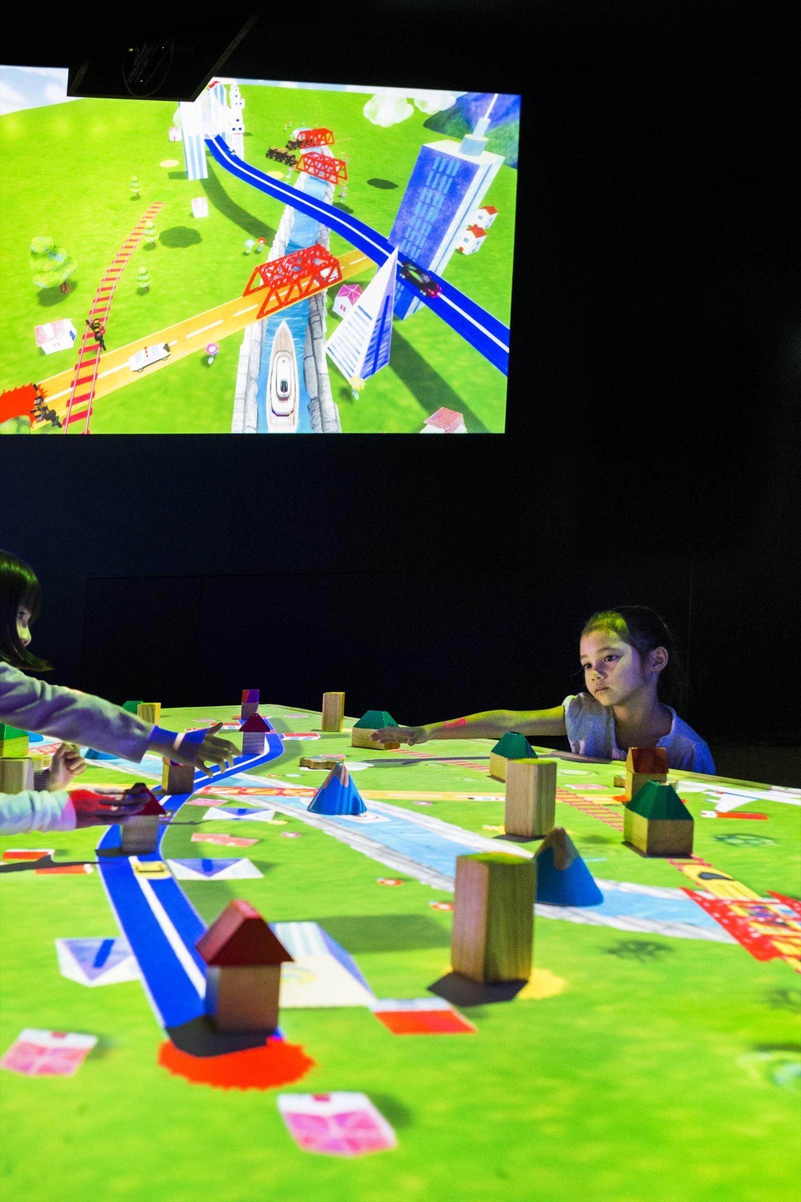 teamLab, 2016-, Interactive Digital Installation, Wooden blocks, Sound: Hideaki Takahashi