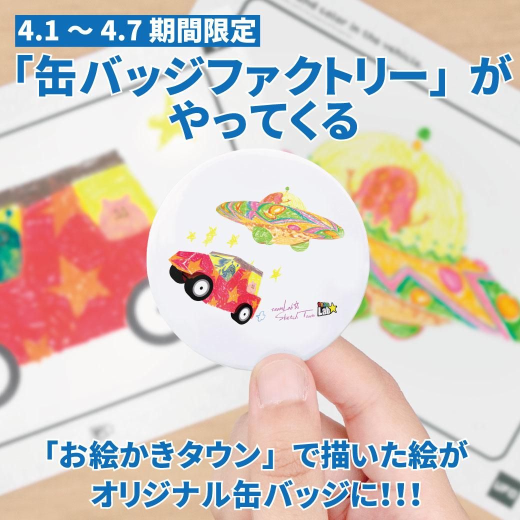 「チームラボ 学ぶ!未来の遊園地」ららぽーと湘南平塚店では、4月1日(月)~4月7日(日)の7日間限定で「缶バッジファクトリー」を開催!期間中「お絵かきタウン」で描いた絵のオリジナル缶バッジを作ること...