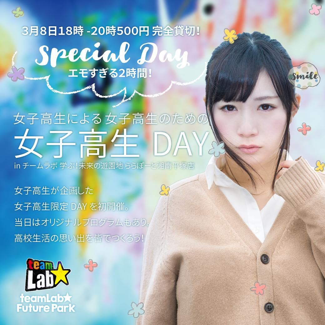 女子高生のための女子高生のよる”女子高生DAY”を初開催!@チームラボ 学ぶ!未来の遊園地ららぽーと湘南平塚店女子高生限定貸切!3月8日(金)18:00-20:00の時間に開催「チームラボ 学ぶ!未来...
