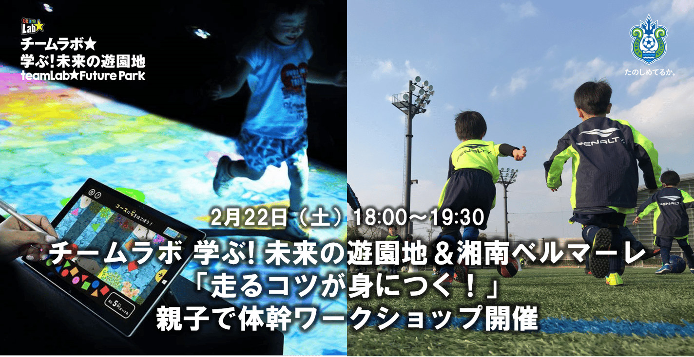 【参加者募集】チームラボ 学ぶ!未来の遊園地&湘南ベルマーレ「走るコツが身につく!」親子で体幹ワークショップ開催のお知らせ