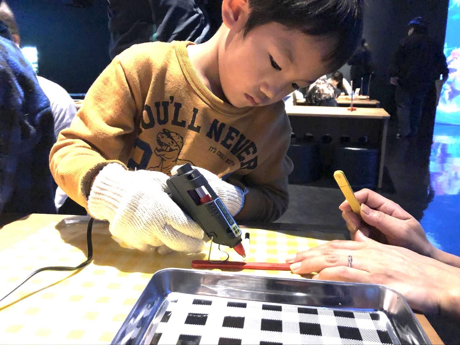 「チームラボ 学ぶ!未来の遊園地 キャナルシティ博多店」では、11月の休日にトイクロスボウを作るワークショップを開催しました。トイクロスボウとは、”おもちゃの弓”という意味です。アイス棒とゴムを使って...