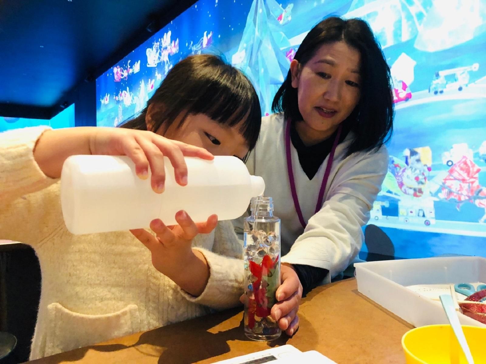 「チームラボ 学ぶ!未来の遊園地 ららぽーと富士見店」では、12月の休日にハーバリウム作りのワークショップを開催しました。ハーバリウムとはお花などを専用のオイルなどに浸したもので、近年インテリアとして...