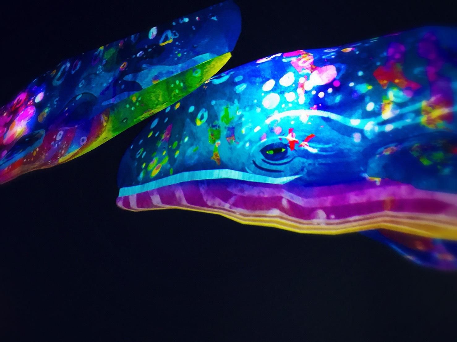また、作品の特性上、空間は暗く、光が点滅したり大きな音がする演出があります。