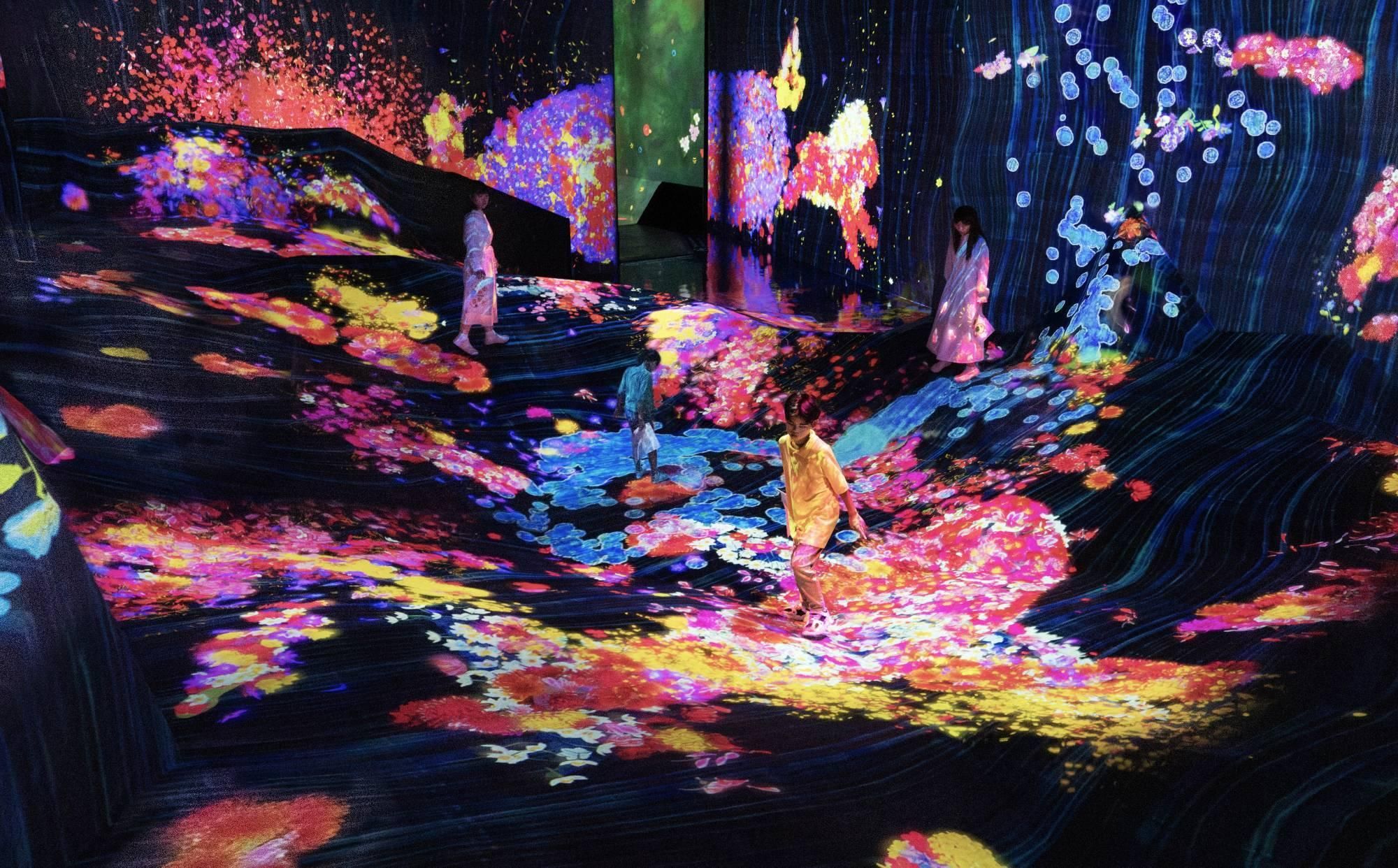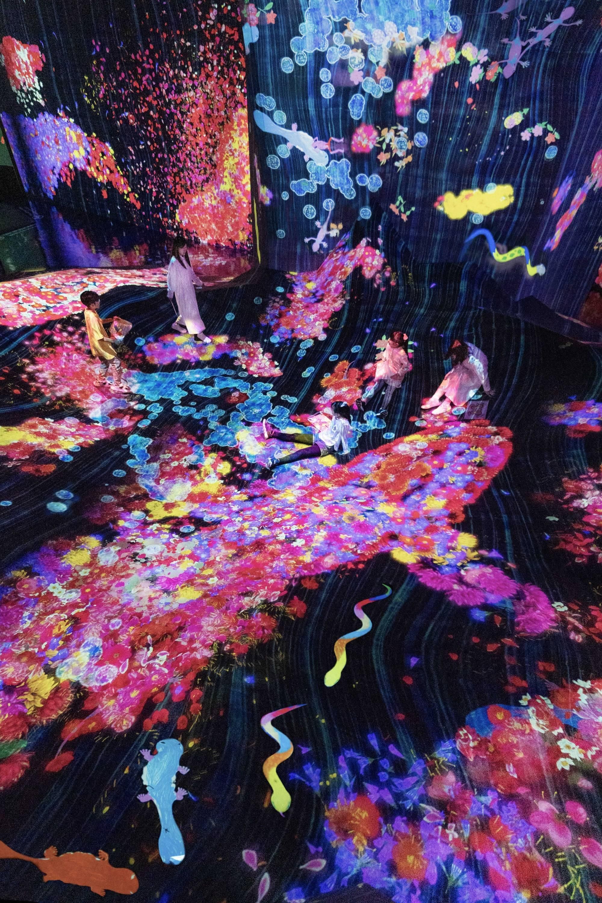 teamLab, 2023-, Interactive Digital Installation, Sound: Hideaki Takahashi
