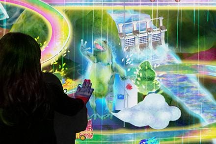 而且參加者還能以手碰觸城鎮的一部分,透過操作天候的方式來使用各種能源發電,並且讓城鎮發展地更加繁榮。